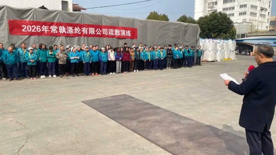 У циљу спровођења релевантних захтева Закона о безбедности производње и Вежбе за хитне случајеве за ванредне ситуације, као и побољшања способности евакуације и бекства запослених у случају пожара, Цхангсху Полиестер Цо., Лтд. организовала је вежбу хитне евакуације 11. фебруара. Одељење полиестера и дивизија Лида су уредно извеле вежбу истог дана у 12 и 13 часова, а у вежби је учествовало укупно 357 запослених из оба одељења.